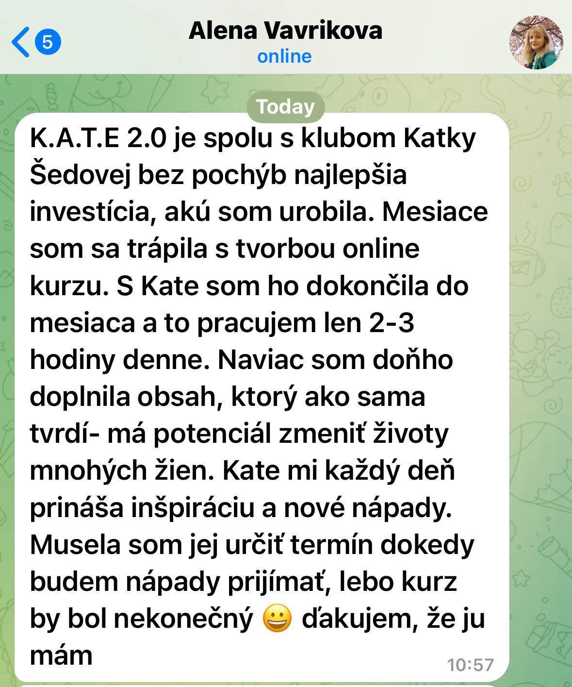 K.A.T.E. 2.0 jsem vytvořila, protože jsem viděla, jak mnoho podnikatelek trápí marketing a prodej. Chtěla jsem vytvořit nástroj, který by jim dal přístup ke všem strategiím a know-how, které jsem za dvě dekády nasbírala, a to v podobě, která je okamžitě použitelná a dostupná 24/7.