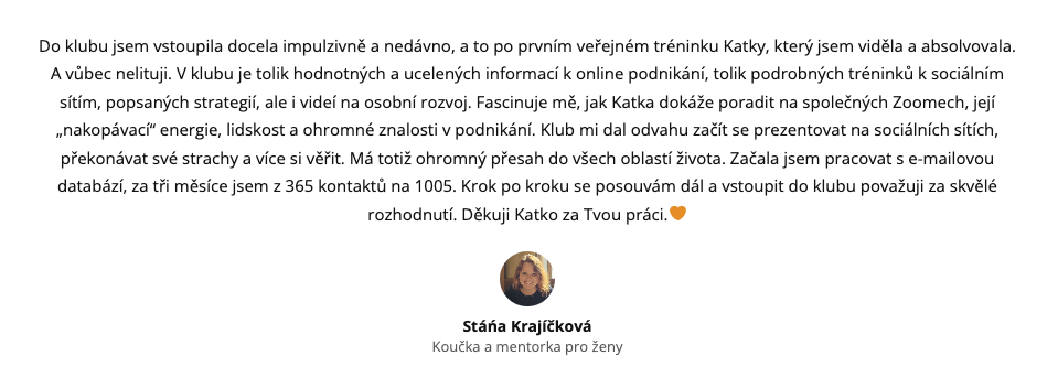 Jmenuju se Katka, jsem online podnikatelka a také zakladatelka Podnikatelského klubu "Vykoukni z ulity" kde pomáháme stovkám podnikatelů rozvíjet ZISKOVÉ ONLINE PODNIKÁNÍ v jakékoliv oblasti.