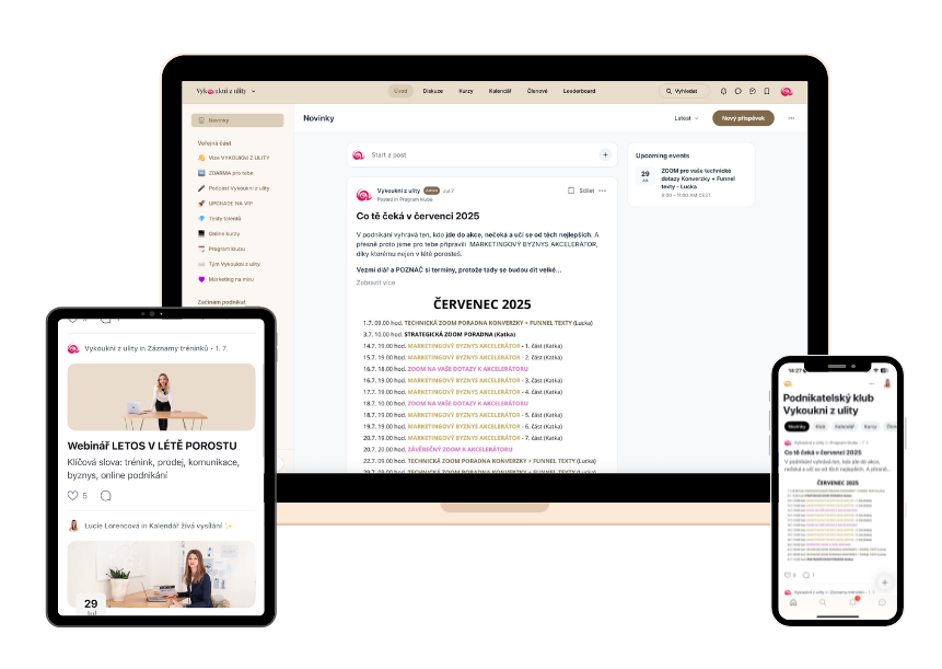 V podnikatelském klubu Vykoukni z ulity tě nejen podpoříme při budování tvého vlastního online podnikání.